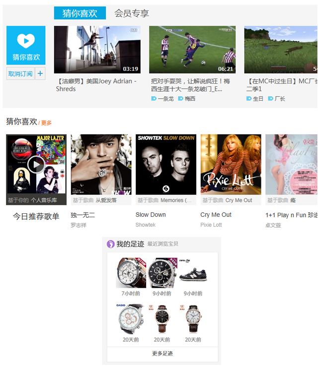 我們認識一個新的朋友,接觸后大家都會對對方產生一個印象,淺到知道他叫什么,方便下次打招呼;接觸的多了會慢慢對對方有更深入的了解,比如興趣喜好、背景等。瀏覽一個網站也是一樣,現在幾乎所有網站都在想盡辦法獲取用戶資料,以便做分析和針對推送,但有沒有想過我們給用戶反饋了什么他所要得到的東西。一味的索取沒有回饋,那這段感情肯定長久不了。為什么要起這個標題,也是這個意思,“猜你喜歡”感覺只是多出一個內容推送模塊,但背后潛藏著非常多的用戶分析研究,而反饋給用戶的感覺是他在這個網站瀏覽過后的存在感,無時無刻的和用戶保持互動,才是用戶體驗高境界。