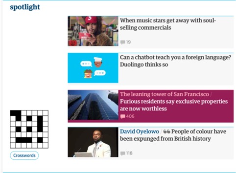 其他內(nèi)容的占地面積?定比這部分小,且基于網(wǎng)格分布在網(wǎng)頁的其他地方。這讓人會(huì)把很多精力集中在重要的新聞上,這些新聞也要引導(dǎo)用戶分享到SNS網(wǎng)站。