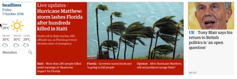 網(wǎng)站的首頁上要有個(gè)大版頭,用于放置當(dāng)天最重要新聞,可能是一個(gè),也可能是兩個(gè)。這片區(qū)域通常會(huì)配有報(bào)道相關(guān)的一張大圖。