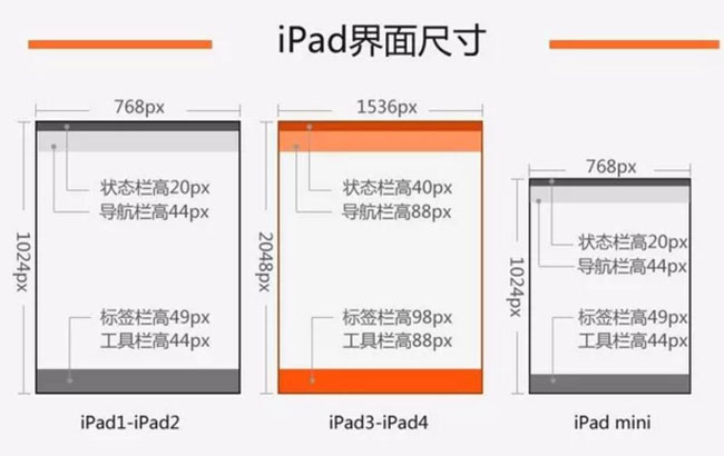 其中ipad1、ipad2、ipad mini均已淘汰,在制作網站布局時已基本可以不再考慮這些分辨率的產品了。