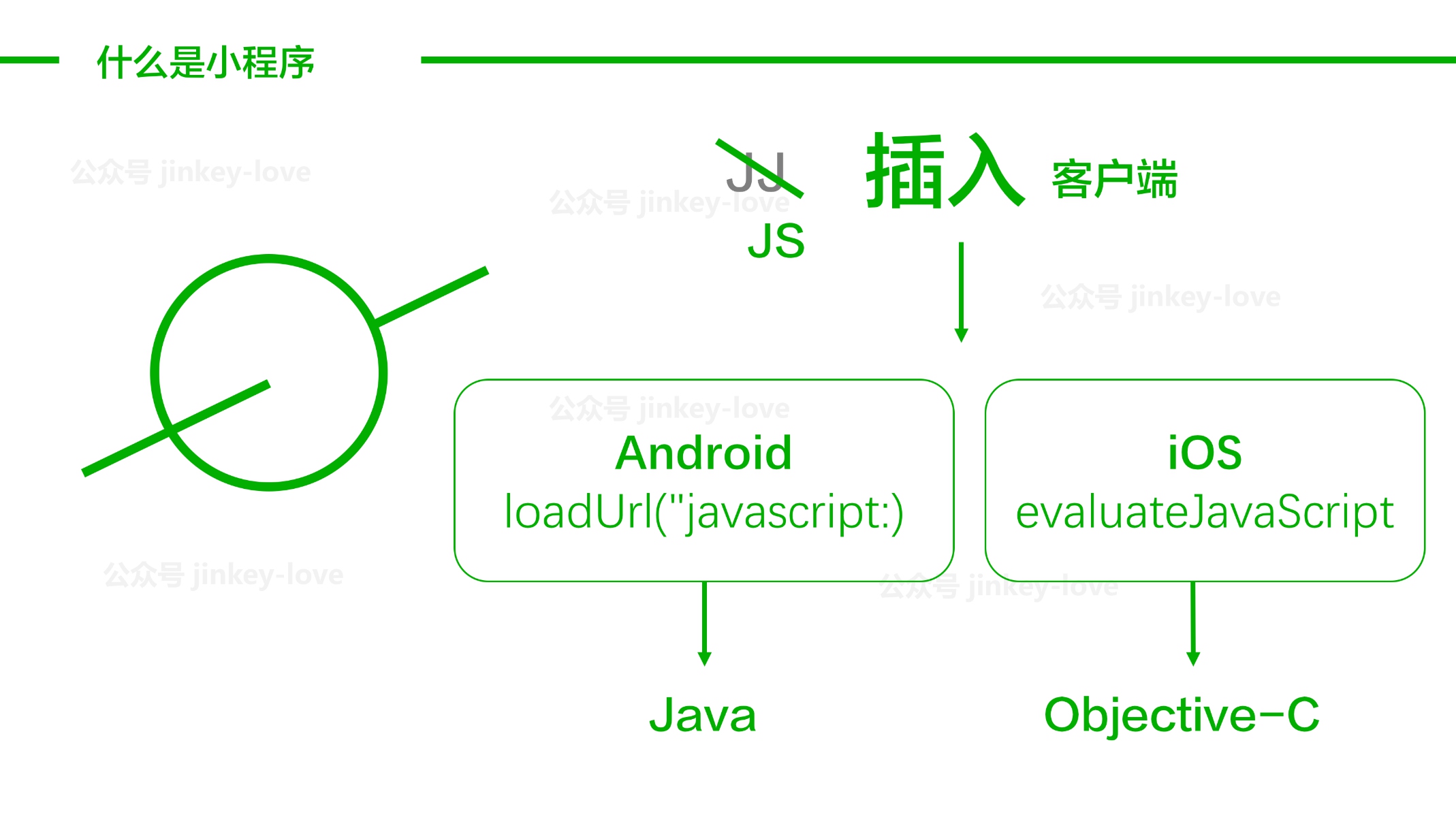 小程序寫的時候用的是 javascript 這種網頁開發(fā)語言,首次運行會把這個“網頁”緩存到本地,所以不是不用下載,而是下載的包比較小而已。然后通過 Android 或 iOS 各自的 JSBridge 方法轉換成對應的 Java 或 Objective-C 方法運行。