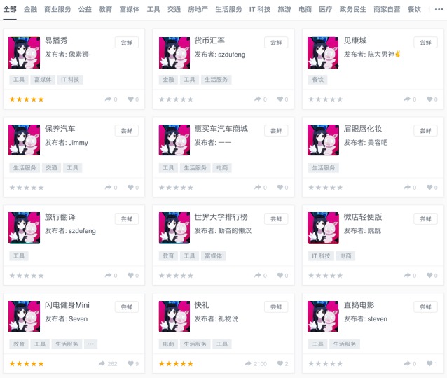 張小龍在公開課說了:”我們并不會存在一個小程序的商店,所以我們也并不會像外界所猜測的那樣,做一個APP的分發(fā)商店”。既然微信不做,巨大的入口價值,自然就會有別人去做這件事。讓別人記住那么多小程序的名字,每次想用的時候就去搜一下是很麻煩的,如果能把小程序匯總起來,想用的時候就去導航網站找,估計會方便很多。