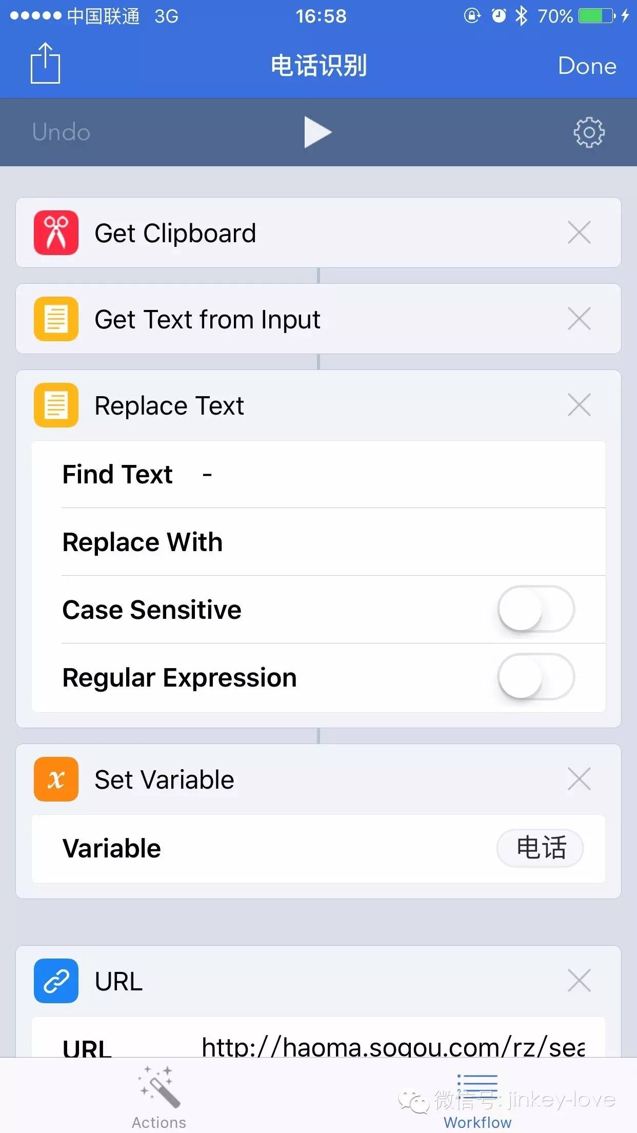 Workflow,一款通過剪切板等輸入,然后設定好動作,既可以做分詞、發(fā)送到郵箱、查詢是否詐騙電話號碼等等非常多的自定義工作流。workflow 需要獲取用戶剪切板內容,調起郵箱、印象筆記等第三方 app、打開網頁等多種系統(tǒng)能力,而小程序不會向開發(fā)者暴露所有的系統(tǒng) api,這跟小程序定位不符合。
