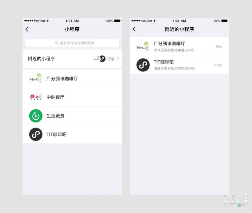 微信官方稱,“附近的小程序”是一種典型的線下場景集合。用戶點開附近,可能會出現公眾號關聯的“門店小程序”和普通小程序。