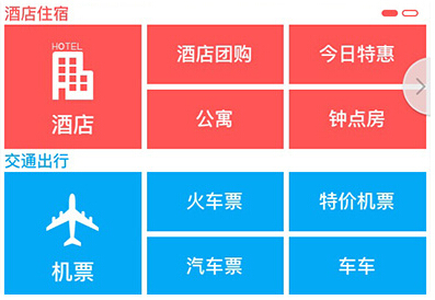 上圖是此前同程旅游的一個界面。可以看到右邊有一個小箭頭,提示用戶右邊還有內容。這個設計的目的很簡單:減少首頁的占用;利用用戶對箭頭的習慣,主動滑動。但是事實是,這樣的效果并沒有設計時設想的好。我們發現這樣的設計并不“易用”,因為對用戶而言,這樣的按鈕,并不能判定接下來的操作是左滑、右滑、點擊還是其他。我們再看下一個案例: