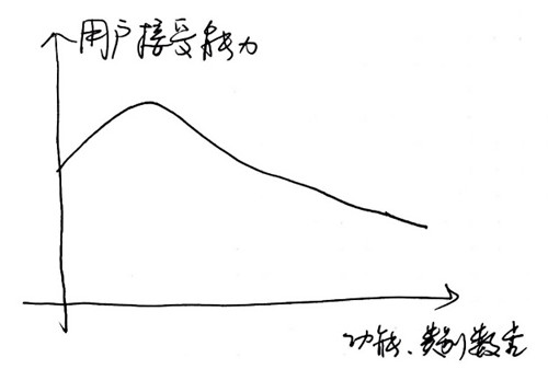 隨著內容、功能的增加,用戶對于導航數量的接收程度將會發生一些變化(一定數量內,用戶接受度增加,但隨著數量的增長,用戶接收能力會逐漸降低):
