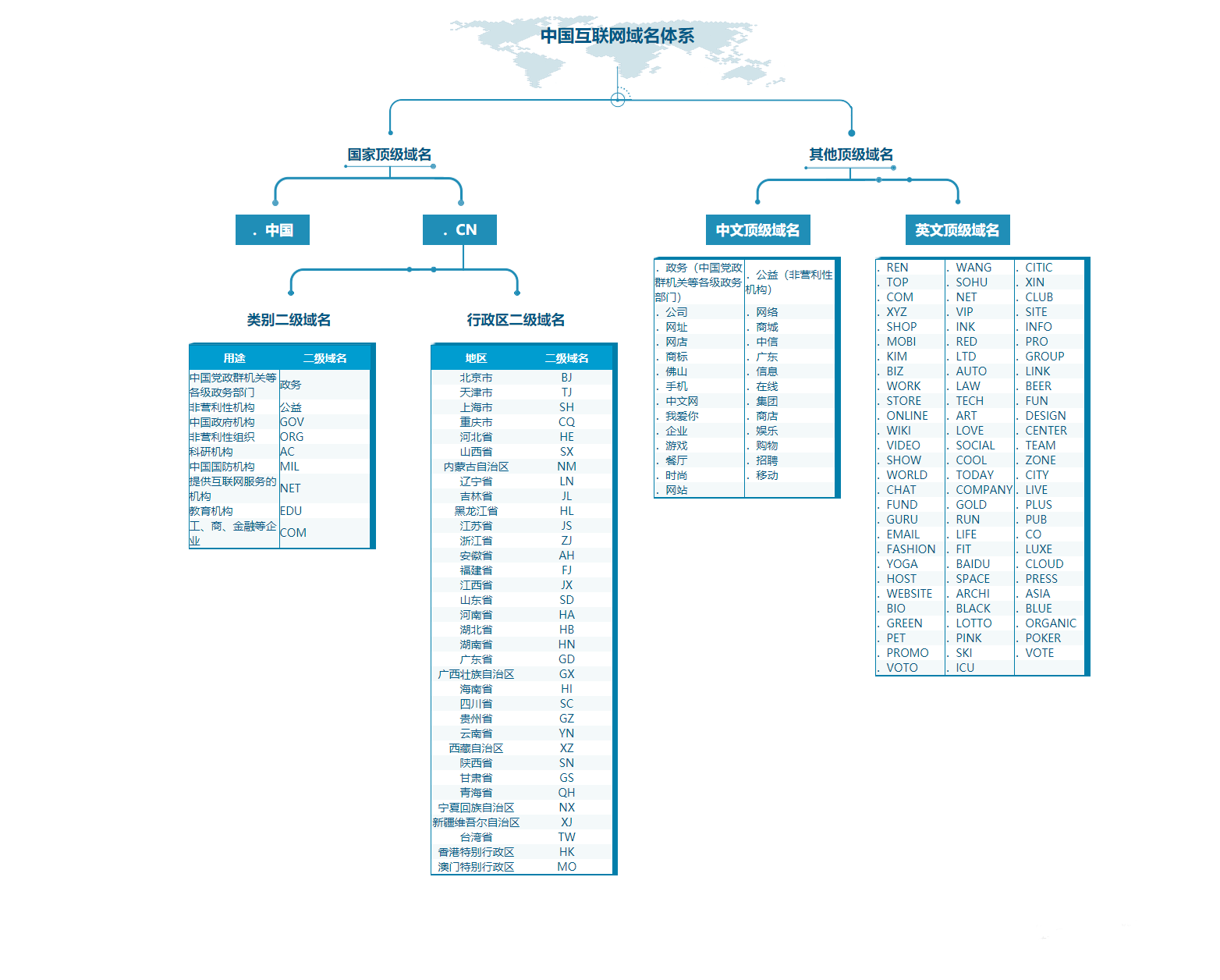 省級 后綴 其他意涵 北京市 bj.cn 報價、編輯、布局、比較等 福建省 fj.cn 風機、房間、飛機、風景等 上海市 sh.cn 生活、手繪、售后、商會等 江西省 jx.cn 機械、績效、嘉興、駕校等 天津市 tj.cn 統計、推薦、太極、體檢等 山東省 sd.cn 殺毒、私單、速度、刷單等 重慶市 cq.cn 產權、傳奇、拆遷、才起等 河南省 ha.cn 哈 河北省 he.cn 賀、喝、禾、鶴等 湖北省 hb.cn 環保、海報、伙伴、烘焙等 山西省 sx.cn 手續、攝像、生鮮、數學等 湖南省 hn.cn 華南、黃牛、懷念、海寧等 內蒙古自治區 nm.cn 奶媽、農民、糯米、檸檬等 廣東省 gd.cn 規定、高端、管道、股東等 遼寧省 ln.cn 老年、理念、留念、靚女等 廣西壯族自治區 gx.cn 貢獻、高校、關系、光纖等 吉林省 jl.cn 獎勵、簡歷、佳麗、教練等 海南省 hi.cn 黑龍江省 hl.cn 互聯、婚戀、狐貍、葫蘆 四川省 sc.cn 商城、市場、素材、收藏等 江蘇省 js.cn 建設、技術、計算、金屬等 貴州省 gz.cn 工資、貴族、公眾、規則等 浙江省 zj.cn 資金、早教、專家、證件等 云南省 yn.cn 越南、印尼、越南、椰奶等 安徽省 ah.cn 愛好、暗號等 西藏自治區 xz.cn 行政、薪資、洗澡、西裝等 陜西省 sn.cn 少年、少女、思念、水泥等 臺灣 tw.cn 跳舞、條紋、攤位、天王等 甘肅省 gs.cn 公司、個稅、柜鎖、高速等 香港 hk.cn 獲客、航空、匯款、戶口等 青海省 qh.cn 企劃、求婚、墻繪、清華等 澳門 mo.cn 墨、饃等 寧夏回族自治區 nx.cn 女性、男鞋、女婿、女星等 新疆維吾爾自治區 xj.cn 現金、橡膠、香蕉、相機等