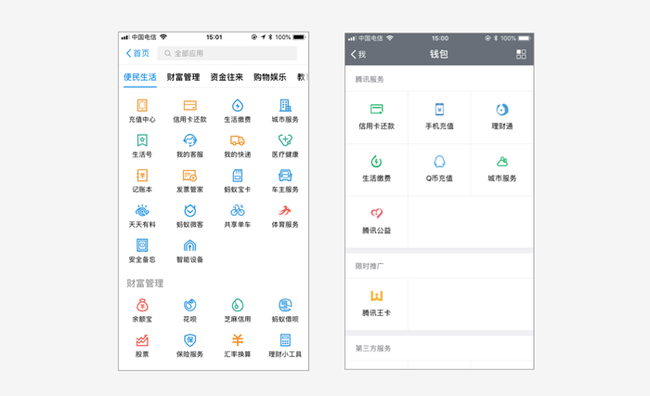 為什么要分類處理?因為當宮格數(shù)量過多時,依據(jù)功能的關(guān)聯(lián)性做分類,可以便于用戶更快地找到自己想要的功能,減少用戶的尋找成本。