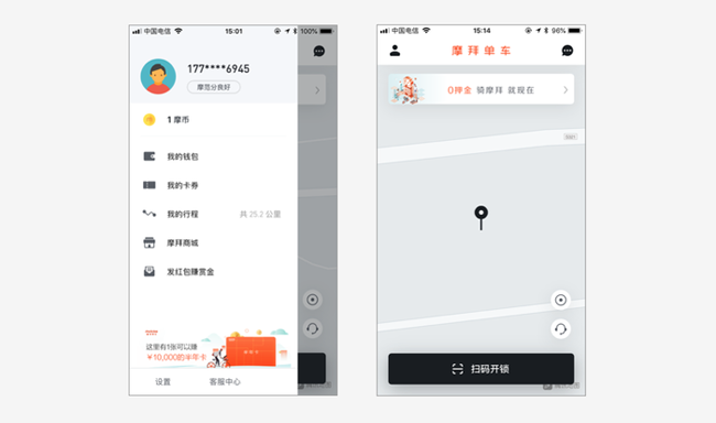 2)使用抽屜導(dǎo)航,通常意味著產(chǎn)品的主要功能集中在主頁面當中。比如摩拜。