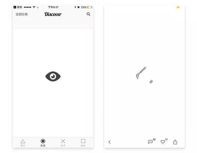 左側的開眼APP,將自己的logo進行變換,仿佛一個眼睛在轉啊轉;右側的好奇心日報APP,用鉛筆和橡皮擦,將自己的品牌字母Q,進行手寫和擦除。這種形式不僅增加了loading的趣味性和設計感,同時還達到了強化品牌的效果,大家可以借鑒使用。