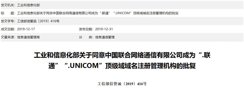 分享題目:中國聯通獲批成為“.聯通”“.UNICOM”頂級域域名注冊管理機構