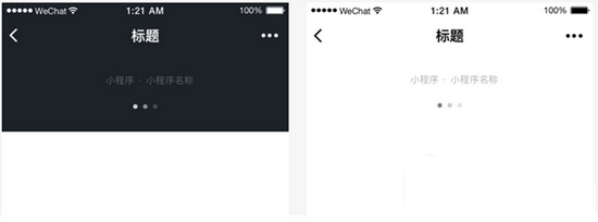 小程序導航欄支持基本的背景顏色自定義功能,選擇的顏色需要在滿足可用性前提下,和諧搭配微信提供的兩套主導航欄圖標。建議參考以下選色效果: