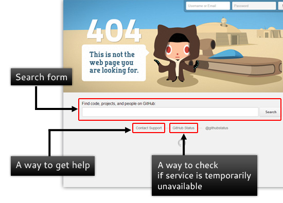 如果輸入不正確的URL就會出現404頁面,通常我們會看到這樣的文字:您的內容可能不再存在,或可能已被移動、由于技術問題,某些網頁剛剛停止工作等等。對于這樣的事件,我們需要創建和設計一個有效的404頁面,這不單單是一個頁面,而是重申,讓用戶已經知道發生了什么。404頁面也可以設計的人性化一點,比如你可以設置一個搜索框、提供一種聯系方式、添加一些建議內容列表等等。