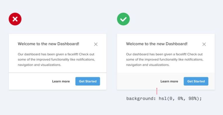 通常,相鄰的元素背景只需要有微妙的差別就能夠讓人對他們進行區分。所以,你所需要做的就是在不同的區塊采用不同的背景色,并且嘗試刪除邊框,因為你根本不需要它。