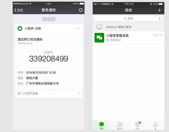 小程序和小程序、小程序和聊天界面可以迅速切換。