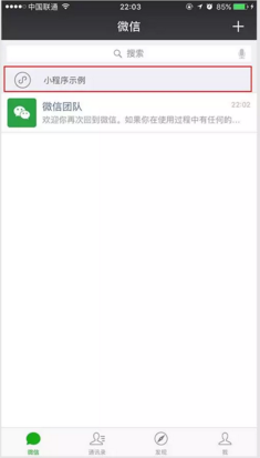 五、歷史記錄。當(dāng)你使用過某個小程序后,在微信客戶端的“發(fā)現(xiàn)-小程序”里的列表,就可以看到這個小程序,想要再次使用它時,通過列表中的歷史記錄就可以進入。 在“發(fā)現(xiàn)-小程序”中,也可以通過搜索進入小程序。