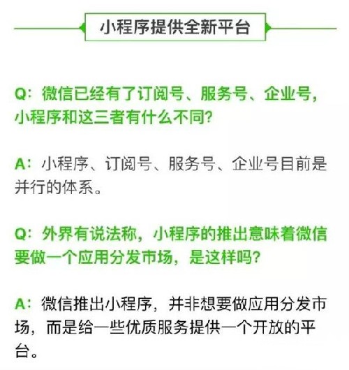 在官方的表述里,小程序和原有的三種公眾號是并行的體系。但很奇怪的是,微信何以避免使用“號”這個表述,而是換成“小程序”。“小程序”在HTML和JAVA時代就曾經(jīng)被使用過。