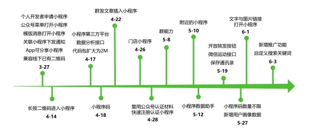 自小程序上線以來,釋放了哪些功能,從下圖中便可以直觀的看到: